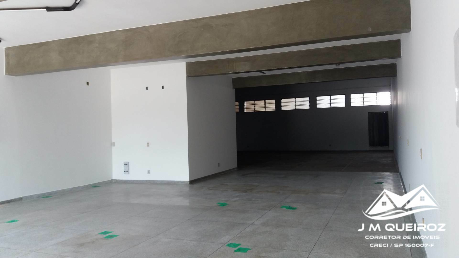 02 salões grandes/ cozinha / escritório / 02 banheiros / mezanino para estoque ou 02 salas / estacionamento 03 autos.