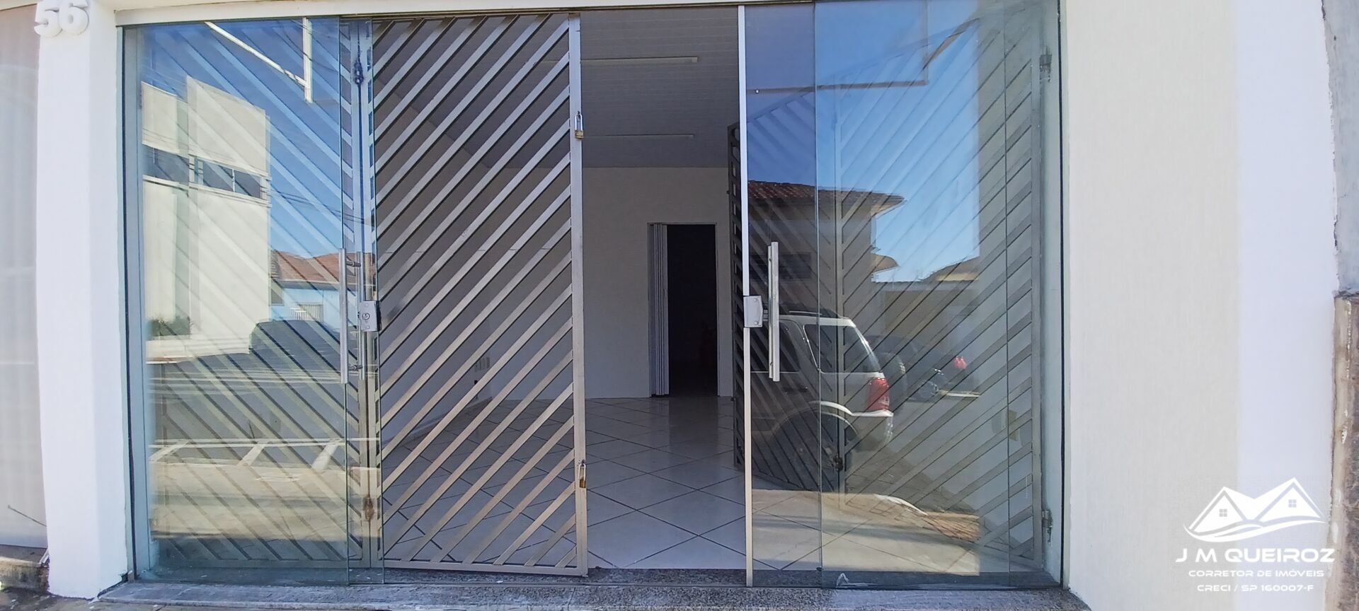 Aluga Edificação Comercial no Centro de Mogi Mirim - SP com recepção, 01 sala grande fechada,01 banheiro, porta da frente em blindex e porta 4 folhas moveis de ferro